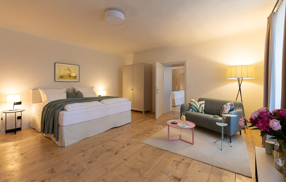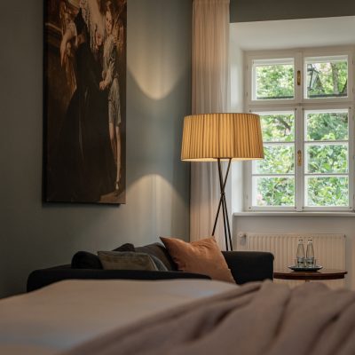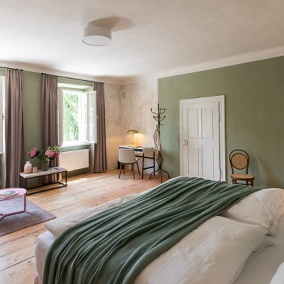 Distributed in various areas of the castle grounds, be that the beautifully renovated residence of the former head gamekeeper of the Esterhazy domain or in the west wing of the Schloss itself, the rooms of Hotel Zum Oberjäger are certain to impress. Cautiously restored and renovated. Brought confidently yet charmingly into the here-and-now through the aesthetic lens of POLKA. Each unique unto itself. Though divided by category for your convenience: Here we invite you to take a closer look at our Double Rooms M for Medium and L for Large.