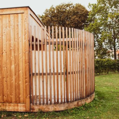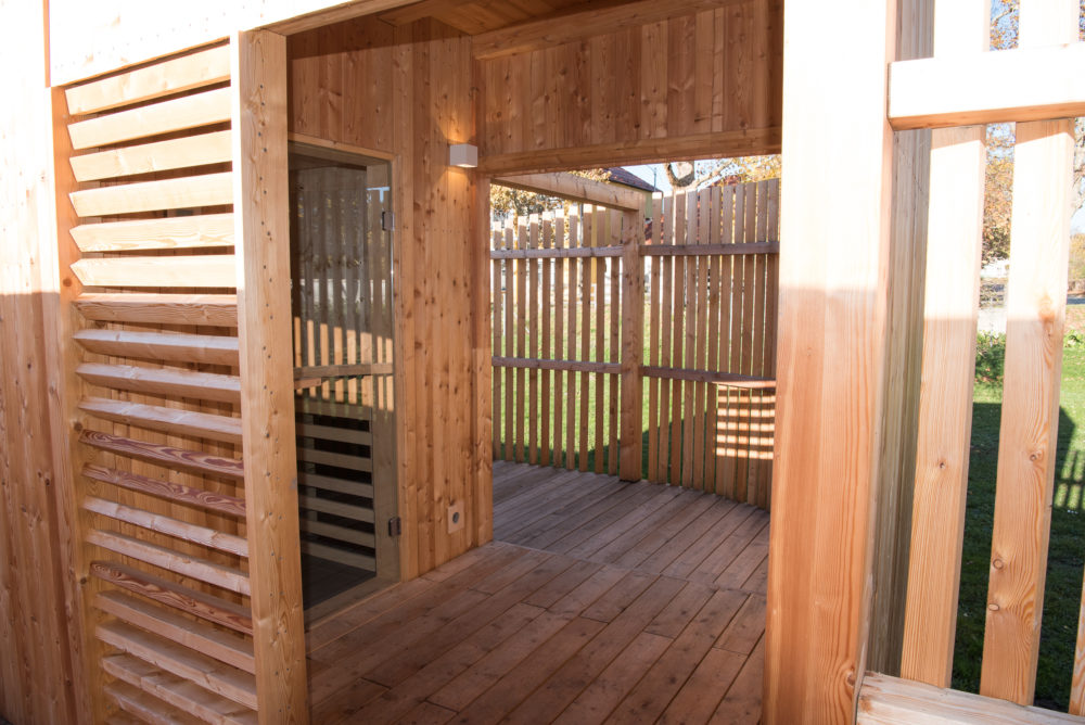 Developed and built by architecture students at Graz University of Technology, this represents the ideal counterbalance to the stresses of daily life. A selection of fragrant oils promotes deep relaxation during the sauna session. Once the sweating is over, a bucket shower and additional spa showers will cool you down nicely. Recliners and a refreshing beverage then encourage you to spend time relaxing amid the verdant grounds. The sauna is open by reservation from 11 AM until 7 PM.