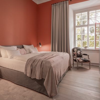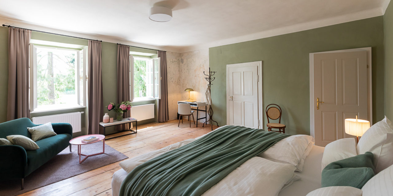 Distributed in various areas of the castle grounds, be that the beautifully renovated residence of the former head gamekeeper of the Esterhazy domain or in the west wing of the Schloss itself, the rooms of Hotel Zum Oberjäger are certain to impress. Cautiously restored and renovated. Brought confidently yet charmingly into the here-and-now through the aesthetic lens of POLKA. Each unique unto itself. Though divided by category for your convenience: Here we invite you to take a closer look at our Double Rooms M for Medium and L for Large.