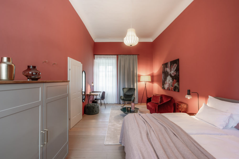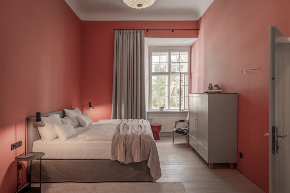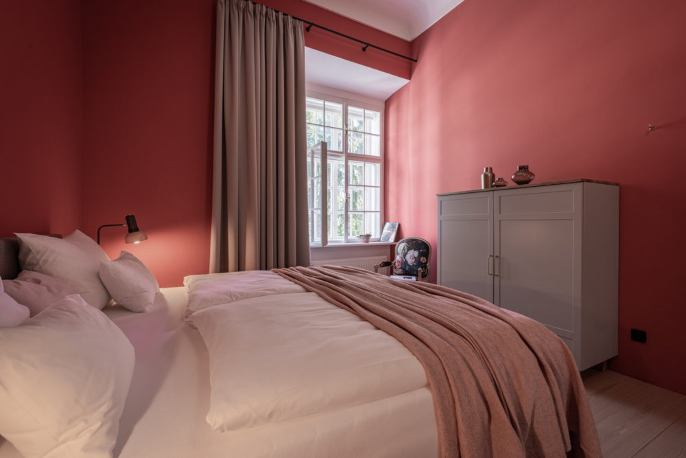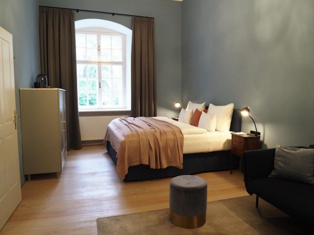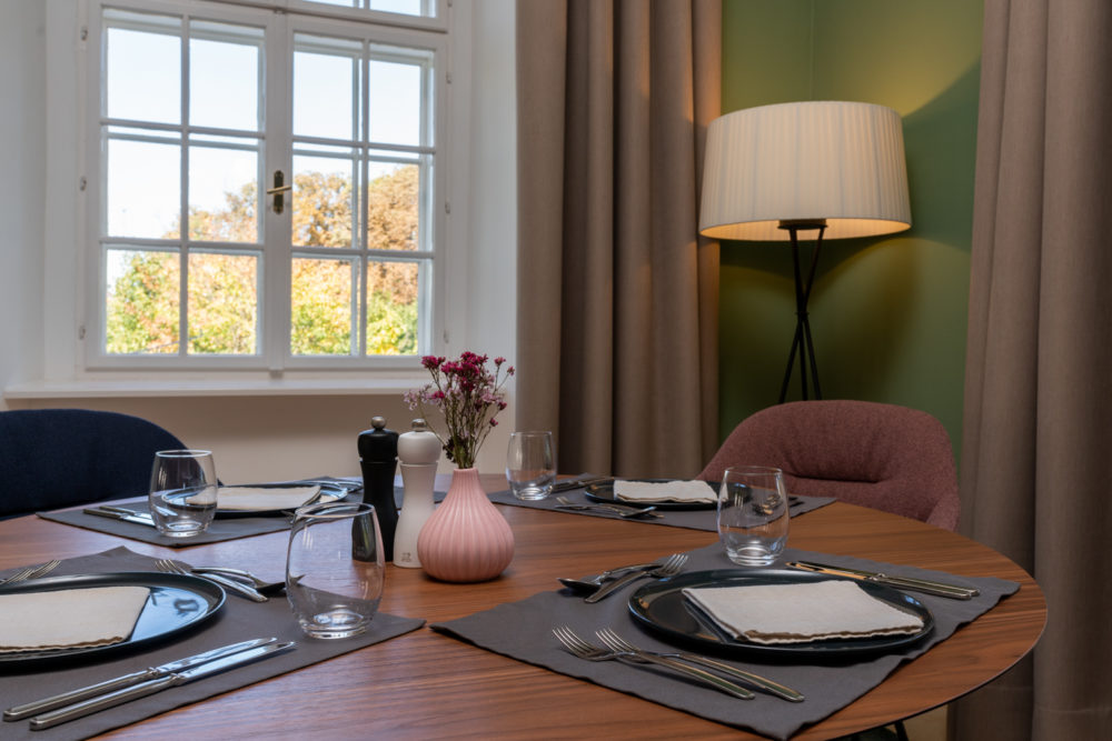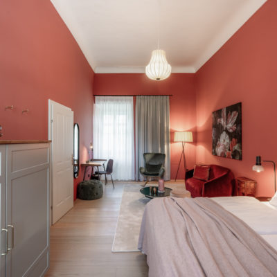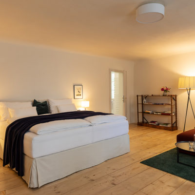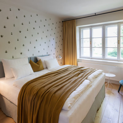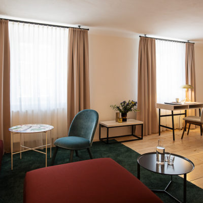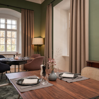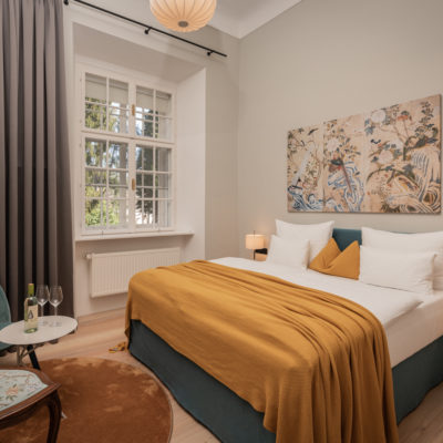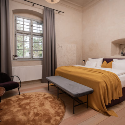Distributed in various areas of the castle grounds, be that the beautifully renovated residence of the former head gamekeeper of the Esterhazy domain or in the west wing of the Schloss itself, the suites of Hotel Zum Oberjäger are certain to impress. Space in abundance. For yourself, friends or family. Cautiously restored and renovated. Brought confidently yet charmingly into the here-and-now through the aesthetic lens of POLKA. Each unique unto itself. Though divided by category for your convenience: Here we invite you to take a closer look at our Suites M for Medium, L for Large and XL for Extra Large.