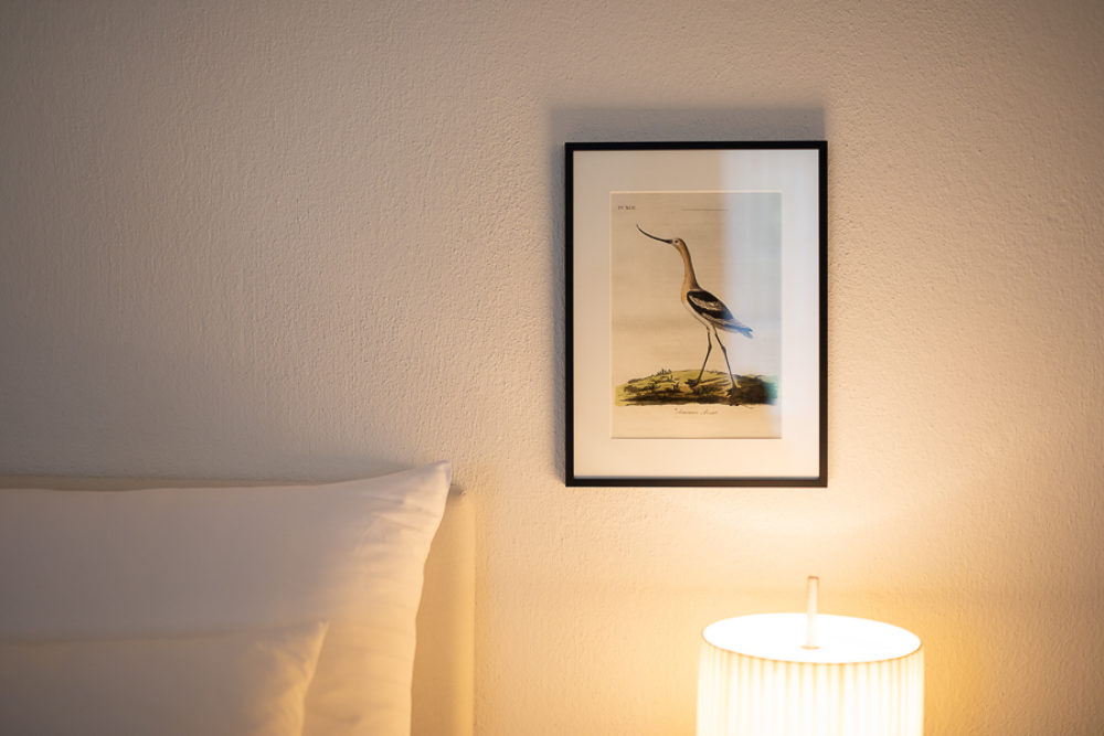 Ca. 49m² suite nestled between the Arboretum and arcaded walkway of the castle. Green birds frolic on the colorful cushions and pictures in the suite, which is aptly named the “Bird Room”. The underlying motif is provided by Josef Frank’s “Gröna Fåglar” – green birds, depicted on cushions found in various places. The feathered residents of the park seemingly lend them a voice, generating a harmony between indoors and out. And as you recline amid the comfortable sofa ensemble, your eyes are inevitably drawn to the birds flittering about effortlessly in the park outside. Radiant in front of the suite, colorful flower beds swathed in the magnificent seasonal tones of nature.
